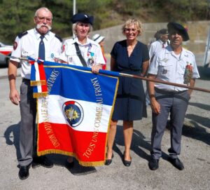 Pas de répit pour la commémoration de faits historiques dans notre région des Alpes-Maritimes. Les cadets sont en vacances et c’est donc Christel qui a fait flotter le drapeau des cadets de l’UNC06 ce 15 août 2025, à côté des 19 autres drapeaux venus pour rappeler ce malheureux anniversaire : l’exécution de 23 résistants. Comme tous les ans, cette cérémonie est très émouvante, pas seulement à la lecture des faits, mais surtout à l’annonce des 23 noms « morts pour la France » avant la dépose des gerbes. De nombreuses personnes se sont mobilisées pour venir rendre hommage à ces héros, fusillés lâchement par l’envahisseur nazi, en représailles du débarquement sur nos côtes de Provence. Cette cérémonie revêt une importance incontestable pour les niçois. La garde municipale de Nice, outre les sonneries traditionnelles d’une cérémonie, a joué le chant des partisans sur le lieu même de leur exécution. Le carré dédié au souvenir a accueilli : le secrétaire général de la préfecture Patrick Amoussou-Adeble, le maire de Nice Christian Estrosi, la déléguée aux associations patriotiques du département Gaëlle Frontoni, des élus de la ville de Nice, quelques présidents d’associations, dont Alain Valot pour l’UNC Nice, et les autorités militaires, avec la présence du colonel du groupement de gendarmerie des Alpes- Maritimes, ainsi que le colonel représentant le DMD, qui a félicité l’UNC pour son engagement avec les cadets.