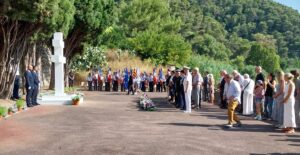 Pas de répit pour la commémoration de faits historiques dans notre région des Alpes-Maritimes. Les cadets sont en vacances et c’est donc Christel qui a fait flotter le drapeau des cadets de l’UNC06 ce 15 août 2025, à côté des 19 autres drapeaux venus pour rappeler ce malheureux anniversaire : l’exécution de 23 résistants. Comme tous les ans, cette cérémonie est très émouvante, pas seulement à la lecture des faits, mais surtout à l’annonce des 23 noms « morts pour la France » avant la dépose des gerbes. De nombreuses personnes se sont mobilisées pour venir rendre hommage à ces héros, fusillés lâchement par l’envahisseur nazi, en représailles du débarquement sur nos côtes de Provence. Cette cérémonie revêt une importance incontestable pour les niçois. La garde municipale de Nice, outre les sonneries traditionnelles d’une cérémonie, a joué le chant des partisans sur le lieu même de leur exécution. Le carré dédié au souvenir a accueilli : le secrétaire général de la préfecture Patrick Amoussou-Adeble, le maire de Nice Christian Estrosi, la déléguée aux associations patriotiques du département Gaëlle Frontoni, des élus de la ville de Nice, quelques présidents d’associations, dont Alain Valot pour l’UNC Nice, et les autorités militaires, avec la présence du colonel du groupement de gendarmerie des Alpes- Maritimes, ainsi que le colonel représentant le DMD, qui a félicité l’UNC pour son engagement avec les cadets.