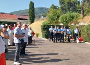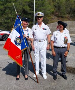 Pas de repit pour la commémoration de faits historiques dans notre région. Les cadets sont en vacance, et c’est donc Christel qui a fait flotter le drapeau des cadets de l’UNC06, au côté des 19 autres drapeaux venus pour commémorer cet malheureux anniversaire, de l’exécution de 23 résistants. Comme tous les ans, cette cérémonie est très émouvante, pas seulement à la lecture des faits, mais surtout à la lecture des 23 noms « morts pour la France », lus avant la remise des gerbes. De nombreuses personnes se sont mobilisees pour venir rendre hommage à ces héros, fusiliers lâchement par l’envahisseur nazi, en représailles au début du débarquement sur nos côtés de provence. Cette cérémonie revet une importance incontestable pour les nicois. La garde municipale de Nice, outre les sonneries traditionnelles d’une ceremonie, a joue le chant des partisants sur le lieu meme de leur execution. Le carré dédié au souvenir a accueilli, Monsieur le secrétaire général de la prefecture, Patrick Amoussou-adebke, Monsieur le Maîre de Nice, Christian Estrosi, Madame la déléguée aux associations patrioriques du département, Gaelle Frontoni, des élus de la ville de Nice, quelques presidents d’associations, dont Alain Valot pour l’UNC Nice, et les autorites militaires, avec la présence du colonel du groupement de gendarmerie des Alpes Maritimes, ainsi que du Colonel représentant le DMD, qui a félicité l’UNC pour son engagement avec les cadets. Il est à regretter, une fois de plus l’absence du DMD sur des cérémonie qui touchent le cœur des nicois, surtout au sein d’un département qui est un désert militaire.